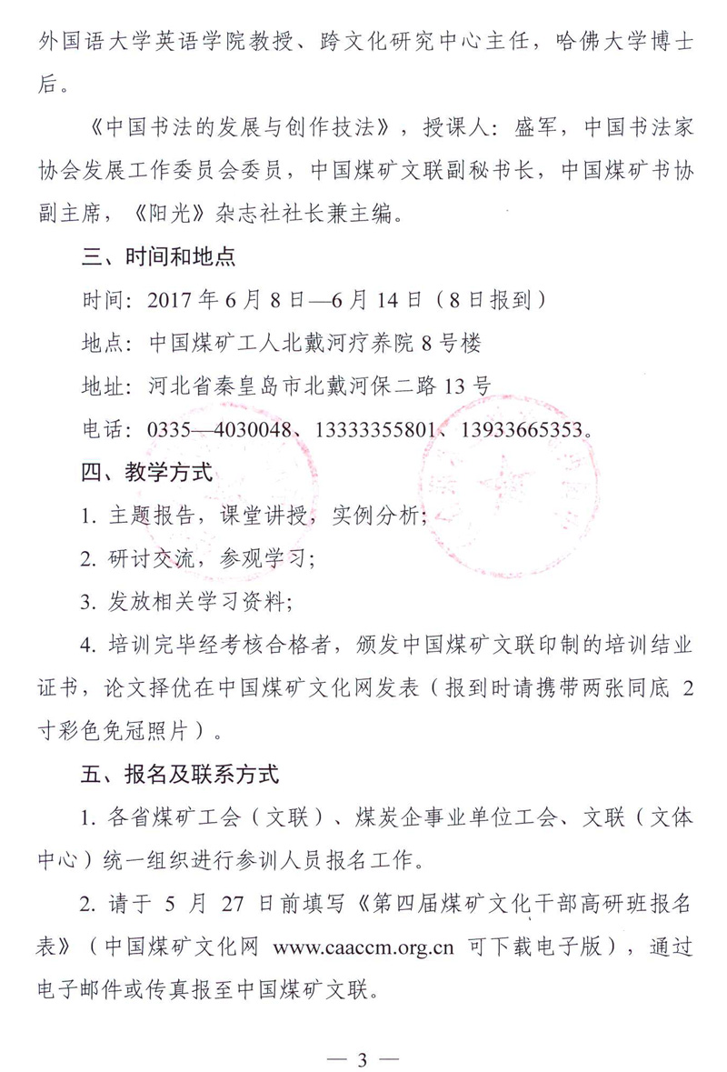 关于举办第四届煤矿文化干部高研班的通知 来源:中国煤矿文联 作者: 时间:2017-05-15 【字体:小 大】 附件:第四届煤矿文化干部高研班报名表 智能标签: 中国煤矿文联 相关内容 分享到: 【打印正文】