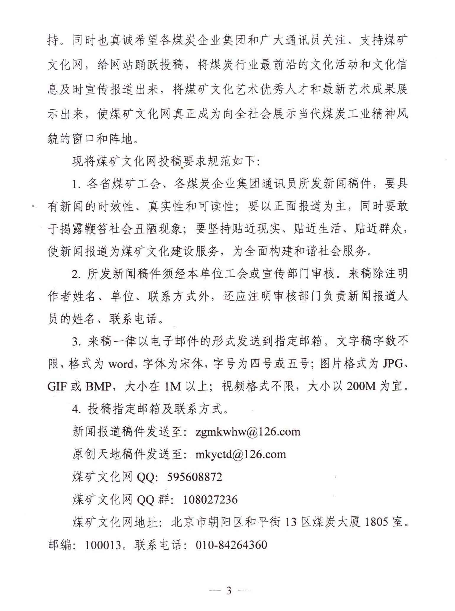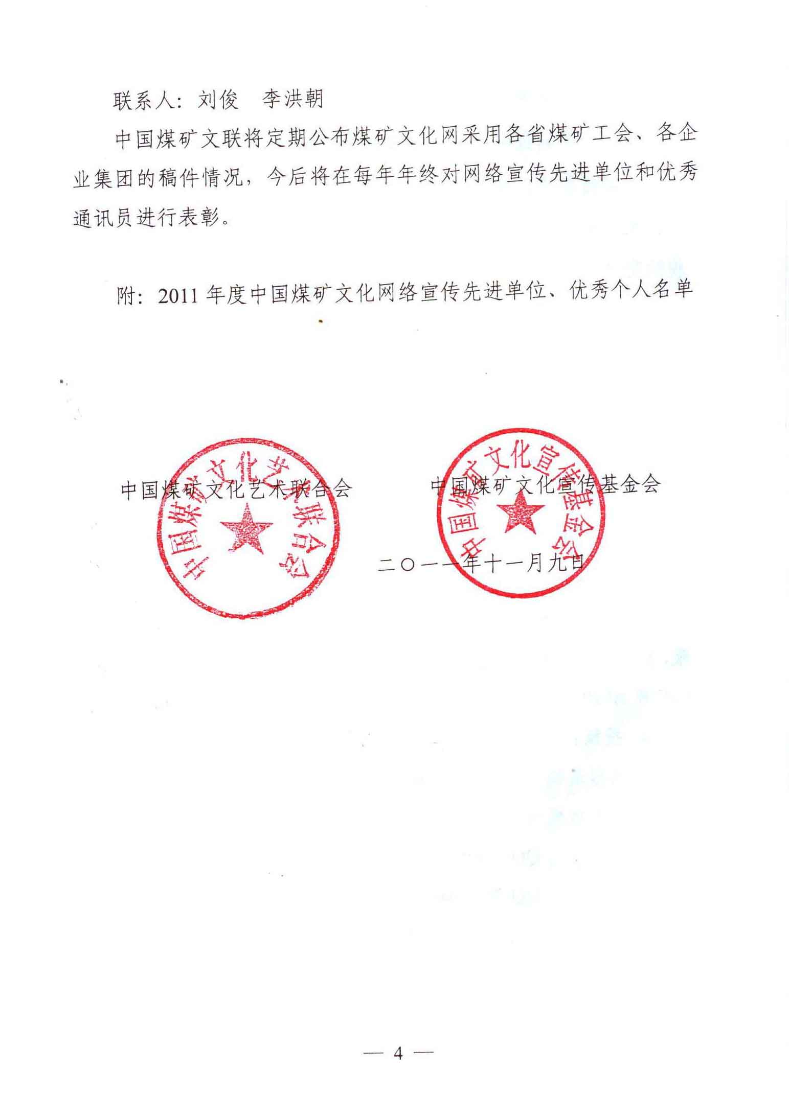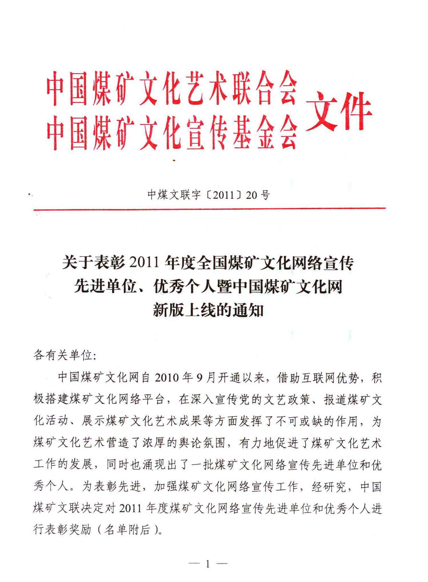 关于表彰2011年度全国煤矿文化网络宣传先进单位、优秀个人暨中国煤矿文化网新版上线的通知