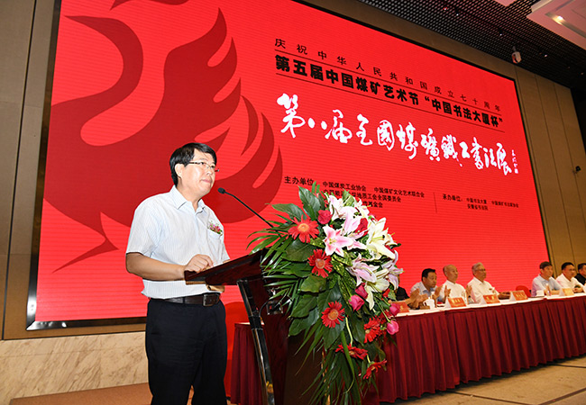 张强代表第五届中国煤矿艺术节组委会讲话。他指出,本届展览,不仅是煤矿书法界在新时期优秀成果的一次集中展示,更是煤矿书法精神的又一次传承。活跃在八百里煤海的煤矿文艺家们,一手开采乌金,一手墨海挥毫,他们用颜骨柳筋,风格多样的书法作品描绘了日新月异的美好矿山生活,彰显出了当代煤矿书法家对于书法艺术的不懈追求。他强调,新时代要有新作为。广大煤矿文艺工作者们要紧密团结,共同守住为煤矿工人谋幸福的初心,担起推动煤炭工业高质量发展的光荣使命,积极投身火热的煤矿生产生活,用优秀文艺作品讴歌矿山、赞美矿工,记录新时代煤炭工业的辉煌发展成果,向伟大的新中国成立70周年献礼!