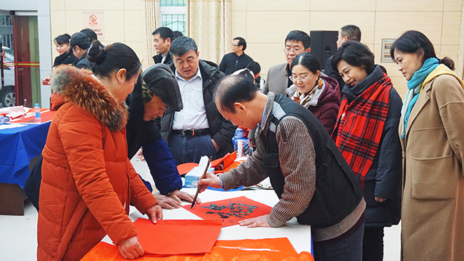 文艺志愿者们为丰城矿区职工书写春联和“福”字
