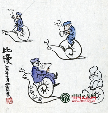 在纪念华君武诞辰百年座谈会上,美术评论家邵大箴忆起了华君武写的《怎么样画漫画》和《补丁集》,感慨良多。“华君武是我国一代漫画大师,也是20世纪漫画界的大师。”邵大箴表示,即便华君武对“自称为大师”或者“互相吹捧大师”所不齿,他还是要这样明确地评价他。“华君武的漫画上至国家领导,下至普通老百姓都可以看懂,很多人当时非常崇拜他,都想见一见他,为此,华君武还特意画过一幅漫画——虽然蒙着自己的脸,但别人还是都和他打招呼。”在邵大箴看来,华君武的幽默是天生的,是和别人不一样的。“幽默有广义和狭义、低俗和高雅之分,幽默缺少不了笑,缺少不了滑稽,但是,不能因笑而笑、因滑稽而滑稽,而是要有意义的笑,意味深长的、引发思考的笑。最早把‘幽默’这个词带到中国的是林语堂,林语堂说,最上乘的幽默是心灵的光辉和智慧的丰富。林语堂的话除了说明幽默需要智慧外,还强调幽默需要感情,感情不丰富幽默不起来,感情丰富缺少智慧,也幽默不起来。华君武是既有感情又有智慧,幽默贯穿他整个艺术创作始末。”这也正如华君武所说,如果一个人能经常看些幽默小说、听些好的相声段子、看些幽默的漫画,必有助于幽默细胞的生长,具有幽默感的人会比没有幽默感的人生活得更快乐。