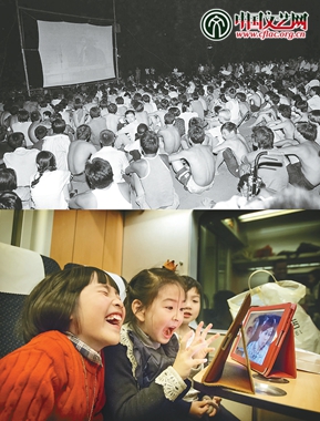 上图:辽宁沈阳市民在观看露天电影(摄于1994年8月)
