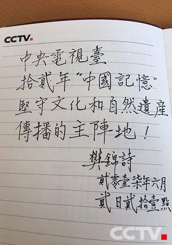 樊锦诗先生为《2017中国记忆》题字
