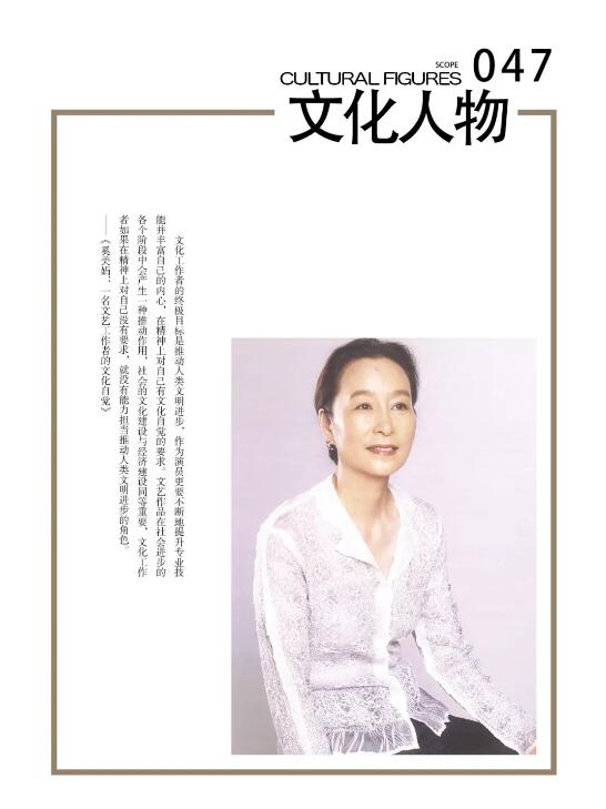 奚美娟将这些身份看作是社会对她个人的信任与肯定,同时,她也借助这些平台提升了自己的格局。“在这些身份下,我更加关心不同制度下大众基本的生存状态,也更理性地看待整个社会的进程。以前我仅作为青年演员时,不太会站在这种高度上思考问题,这些身份使我有了更多的角度看待世界。”除此之外,她一直认为,文化工作者的终极目标是推动人类文明进步,作为演员更要不断地提升专业技能并丰富自己的内心,在精神上对自己有文化自觉的要求。她说:“文艺作品在社会进步的各个阶段中会产生一种推动作用,社会的文化建设与经济建设同等重要,文化工作者如果在精神上对自己没有要求,就没有能力担当推动人类文明进步的角色。”