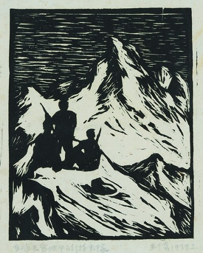 彦涵《当敌人搜山的时候》(版画)