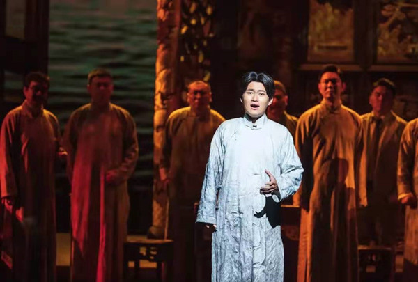 同样,“南陈北李”在中译本《共产党宣言》问世之后,唱出的“一个幽灵/共产主义幽灵/如今登上了中国舞台”这一旋律之前,在幕间大合唱里曾经出现,并且预言“你选择了历史,历史选择了你”。待到尾声,这一旋律发展为“一个幽灵/共产主义幽灵/徘徊在中华大地”,而“你选择了历史,历史选择了你”已经是雕刻在历史天空上的铭文了。对于这样一出具有鲜明文献性的歌剧而言,这就是戏剧的“行动”。