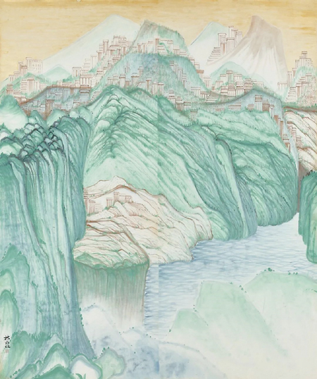 环山筑城水重重(中国画) 林淼