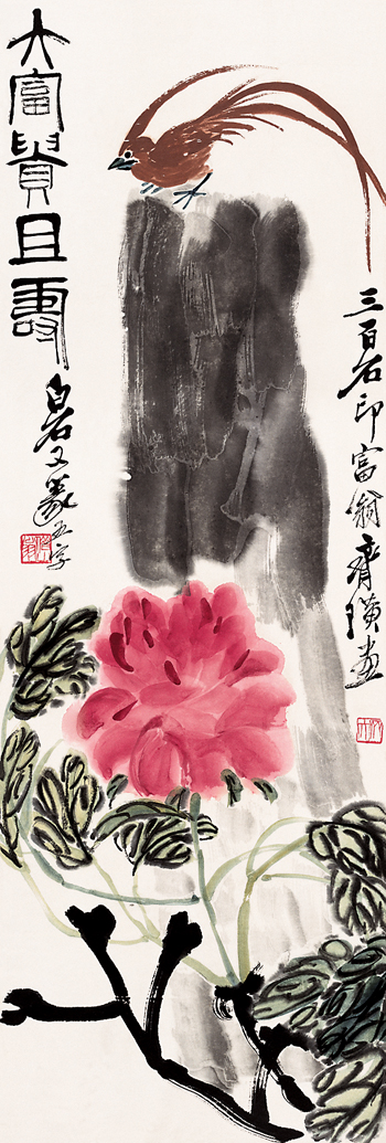 “画者工之余”,即绘画应为做工休息之余而作。“诗者睡之余”借用齐白石自己的话语“绝句诗,可枕上作也”,可以理解为作诗不需要刻意为之,而是在睡觉之余妙手偶得之。“寿者劫之余”是齐白石深刻的人生感悟,“劫”是指丁巳年(1917年)齐白石幽居湖南乡下期间,由于兵燹匪乱导致平静的生活被打乱,不但多年经营的家园被洗劫一空,自己也只能远离家乡故土,只身北上京城漂泊。由此可见,齐白石并没有将写诗、作画视作难事,而是作为忙碌生活中的一种情绪调节和放松方式。正是这种轻松心态,使得他更加合理地利用时间,创作出大量精彩的画作和诗文。而在面对人生的劫难和低谷时,齐白石保持着一份平和安宁、积极乐观的心态,不但人生得享高寿,艺术上也终获大成。