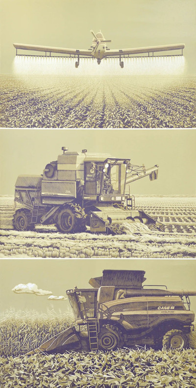从当年4亿人吃不饱,到今天14亿多人吃得好,这种历史性转变,离不开农业科技飞跃发展。不少美术工作者以“藏粮于技”为选题,通过多元视角观察,表现中国粮食科技的创新步伐。