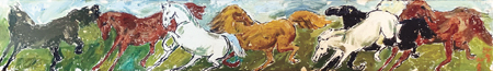 古今画马者,唐有韩干,宋有李公麟,元有赵孟頫,至明清后走向衰落。而近现代沙耆的恩师徐悲鸿,画马有如郑板桥画竹,家喻户晓。继承其衣钵的沙耆画马也为之一绝。从比利时时期到晚年,运用油画或水彩,或以中国水墨画的不同形式,沙耆从来没有停止过画马。