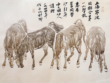 比利时发现沙耆画作《四马图》,系他一九四四年为上海宁波同乡会第一小学所作。