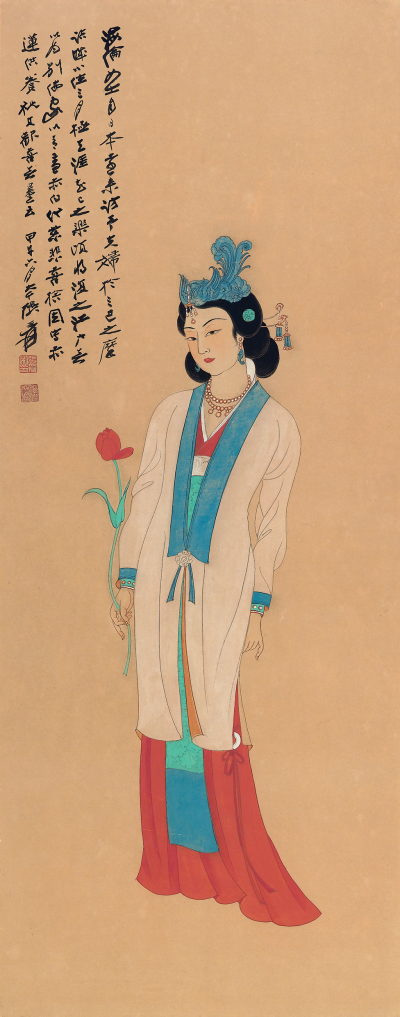 拈花仕女(国画) 113×44厘米 1954年 张大千 广汇美术馆藏(图片来源:《中国文化报》)