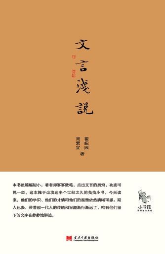 《文言浅说》虽篇幅短小,著者却寥寥数笔,点出文言的奥窍,功底可见一斑。这本掩于尘埃半个世纪之久的小书,今天读来,他们的学识,他们的才情和温雅依然清晰可感。斯人已去,带着那一代人的传统和旨趣渐行渐远了,唯有他们留下的文字在静静地讲述。