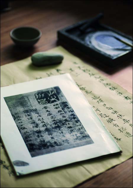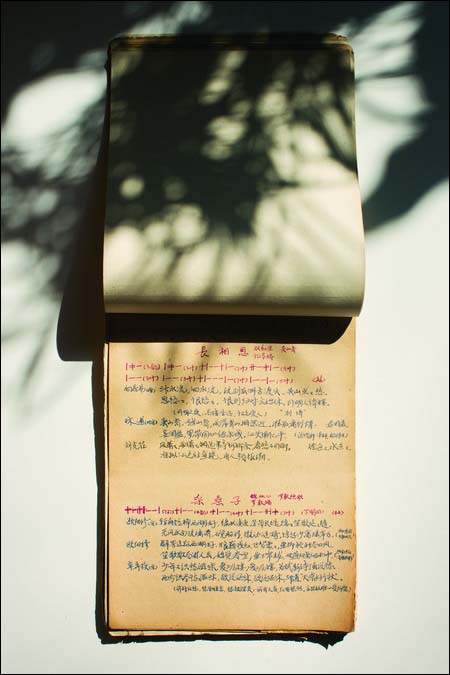 坐上轮椅的母亲坚持着读报, 读书, 读着读着, 歪头睡着了。二〇〇四年春天,母亲决定抄写《心经》。她叫我们扶她坐到可以望见窗外绿林的书桌前,用右手抬起左手,压到宣纸上,然后右手执笔蘸墨书写。手颤得厉害,悬在纸上良久才能落笔写出一个笔画,用尽心力才完成一个字,十几分钟便颓然搁笔。有些日子,母亲起不了床,手指由被褥伸出来,在空中抖颤划字。只要能够起身,母亲执意坐到桌前。我们兄弟工作完毕回家,总先检视案上宣纸,发现经文未续,便知母亲情况不好,读到工整的字迹就欢欣鼓舞。然则,母亲终于无法再坐到窗前。