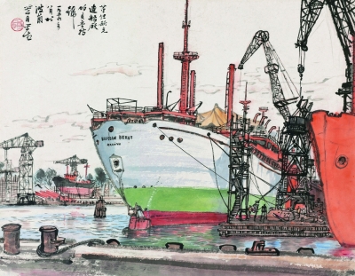 革但司克造船厂(中国画) 关山月