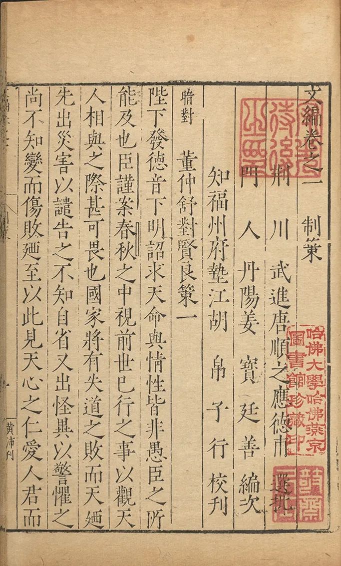 唐顺之《唐会元精选批点唐宋名贤策论文粹》书影,明嘉靖二十八年书林胡氏刻本
