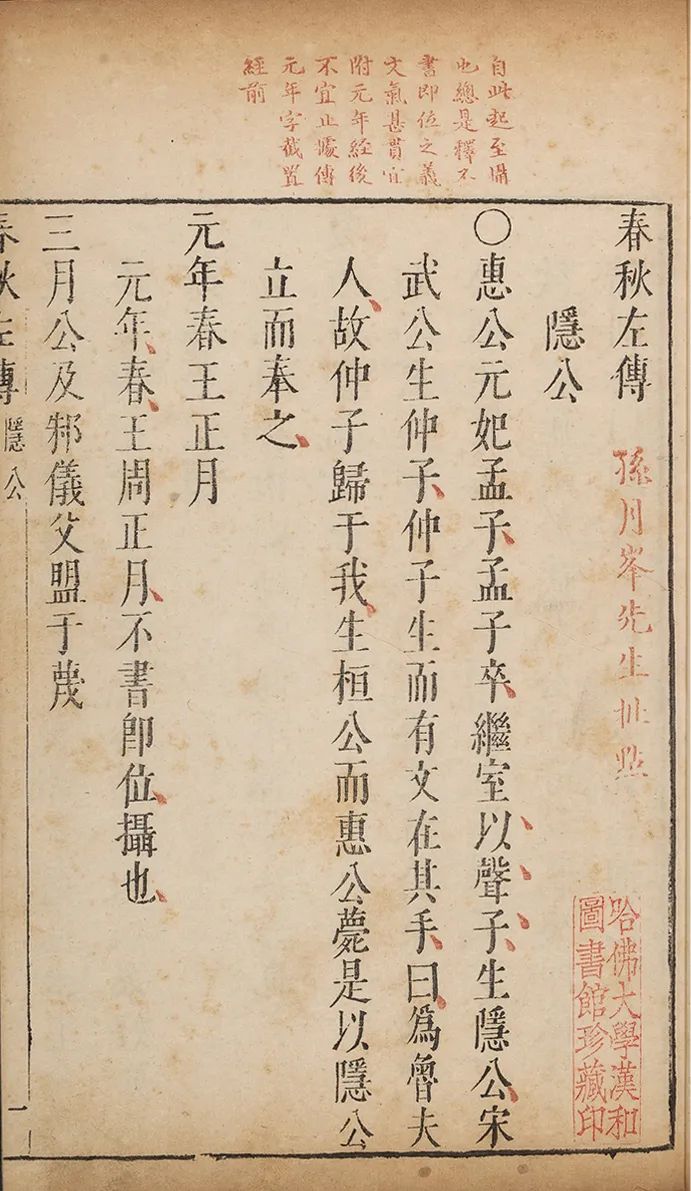 孙鑛批点《春秋左传》书影,明万历四十四年闵氏朱墨套印本