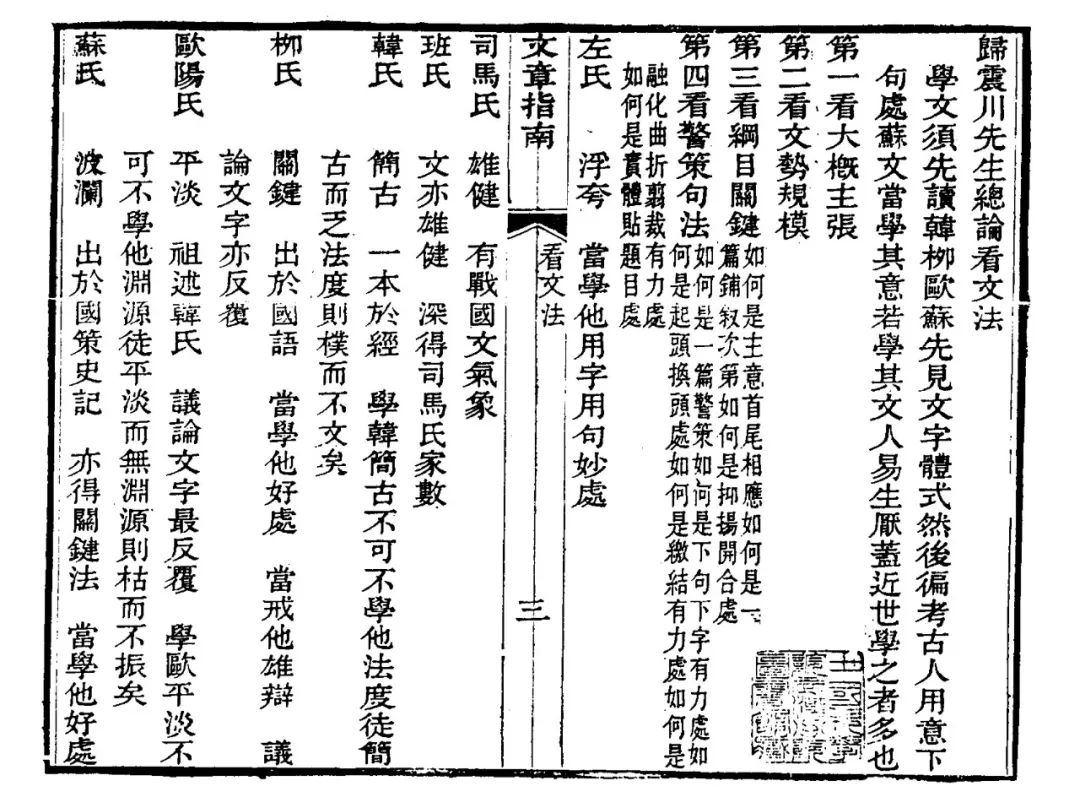 《归震川先生总论看文法》,归有光《文章指南》,清光绪二年刻本