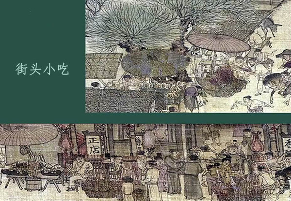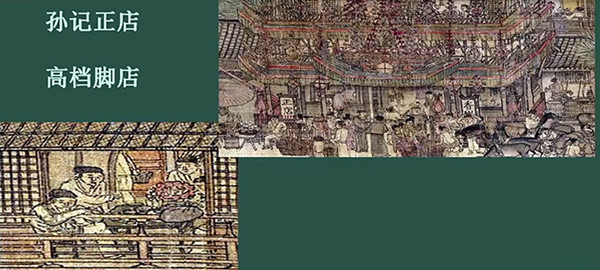《清明上河图》中的饮食铺子,有豪华酒铺,有高档脚店。“脚店”是歇脚之意,起到茶歇休闲的作用。另外,还有一般小铺和街头小吃,可谓类型多样、定位明晰,使得汴京开封的达官贵人和市井百姓皆有消费的满意去处。