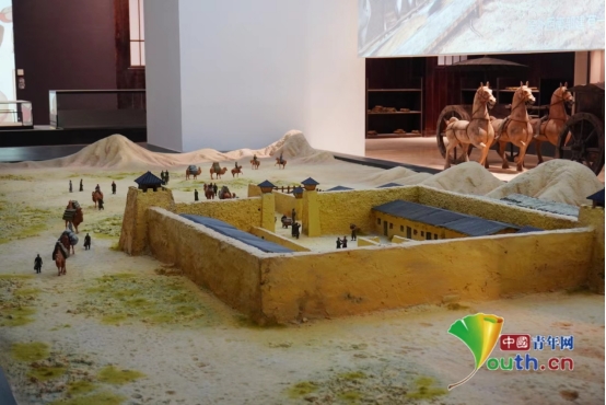 甘肃简牍博物馆里的悬泉置遗址沙盘。 中国青年网记者曹迪摄