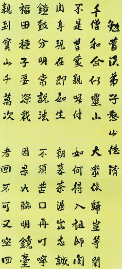 在中国传统诗文和书画领域,经常可以看到禅的意境和哲思的表达,这已经成为中国文人心性修养的重要组成部分。此次展览集合了邵秉仁、钟明善、邹德忠、于曙光、张铜彦、王镛等来自全国各地的100多位作者围绕《坛经》、六祖及历代拜谒南华禅寺、阐释禅文化所作诗文的书法和部分画作近200幅。这些作者既有专职书法家,也有来自其他绘画门类、文学领域以及佛教领域的重要人士,所创作的作品涉及多种书体和风格,体现出不同的艺术素养和品评禅文化的见解,通过他们对禅宗典籍、诗文的转录以及再创作,可以看到中国禅文化绵延至今的历史传承与丰富意涵。展览所呈现的是这些当代学人、名士心灵旅行的视觉轨迹,或俊朗清秀,或沉拙坚实,或结体谨严,或形态超逸,结合以经文或诗词中的意蕴,生发出万般体悟。