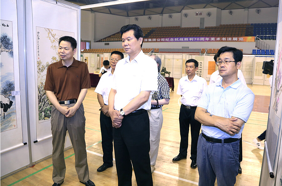 8月18日,开滦集团董事长、党委书记张文学,党委副书记庞学东、张雨良一行到开滦体育馆参观纪念中国人民抗日战争胜利70周年美术书法展览。集团公司工会、文体中心相关负责人陪同参观。