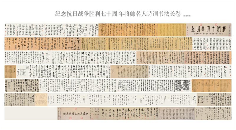 此书法长卷由潞安集团16位书法家共同创作完成,书写内容为将帅名人的抗日诗词共70余首。书法长卷在展厅现场展出后,受到观展者一致赞誉。潞安集团文联将这一书法长卷捐赠于八路军太行纪念馆收藏,既是表达对先烈的敬意,更是为了让人们铭记历史,勿忘国耻,珍惜来之不易的和平生活。