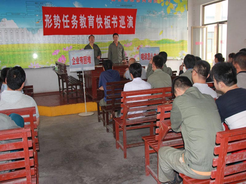 “转思想变观念,理应走在最前面;事不关己,高高挂起的思想丢一边;你不管、我不管、他不管,何谈企业大发展?企业发展不止步,咱的饭碗保得住;雄心勃勃战鼓喧,公司上下齐动员;倡议书、板报展、巡回演,主题活动紧相连……”8月31日,肥矿集团索力得公司工会组织的以 “企业有困难,咱该怎么办?”为主题的形势任务教育快板书巡演活动正式开始。