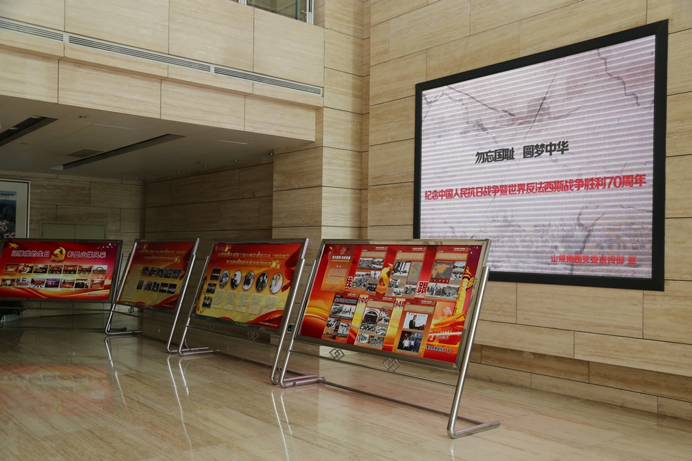 在此次主题宣传活动中,集团通过展示主题电子宣传画面、张贴宣传海报、设置宣传展板等多种形式,营造出纪念中国人民抗日战争暨世界反法西斯战争胜利70周年的浓厚氛围。并且在企业刊物《山煤》的“书斋”和“浮光掠影”栏目进行了专题宣传,在集团官网登载了主题宣传引导标语,并及时刊登全系统开展纪念活动的相关报道,形成了强大的活动声势。同时,集团还将围绕“感恩祖国、感恩山煤”和发扬抗战精神主题于近期开展新一期“道德讲堂”活动,此项工作正在有序推进中,目前已进行了首次彩排。