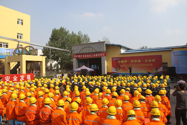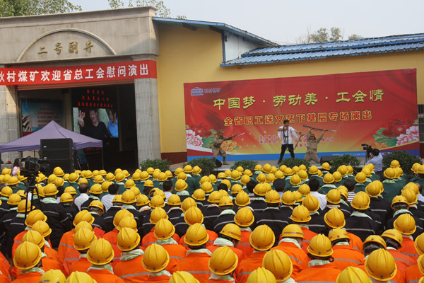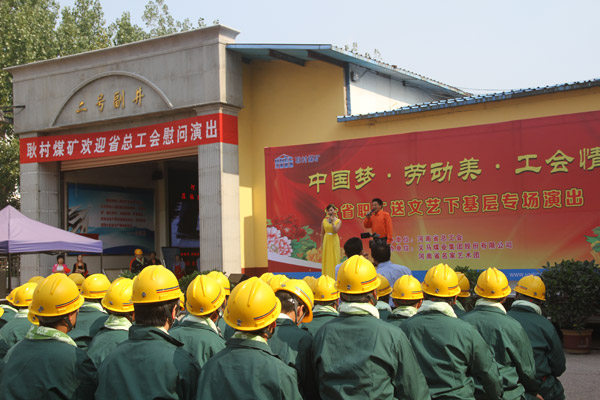 9月25日,由河南省总工会主办、河南能源义煤公司承办的“中国梦、劳动美、工会情”全省职工送文艺下基层专场演出,在耿村煤矿二号副井口拉开序幕,为一线职工送上中秋的祝福。