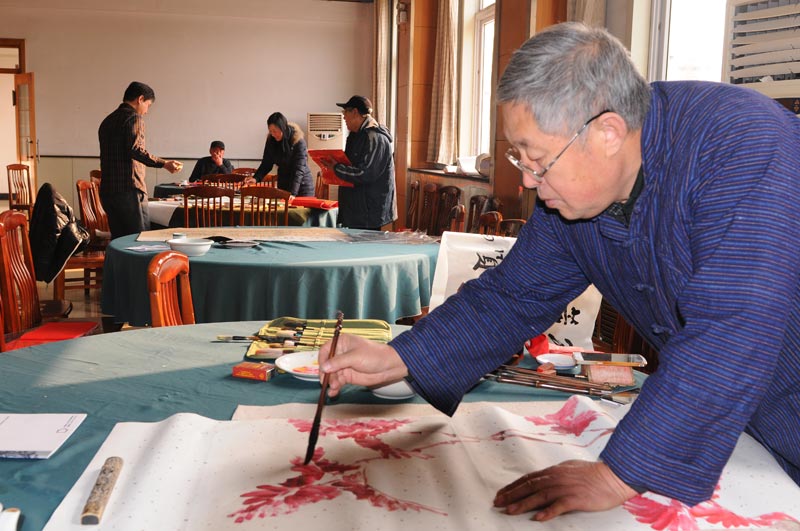 元月21日上午,来自龙口市老年书画研究所的10位老年书画艺术家来到北皂煤矿矿区,尽情挥毫泼墨,现场创作真草隶篆、花草虫鱼等书画作品,他们用书画传情,为矿区广大职工群众送来了寒冬里的别样温暖。