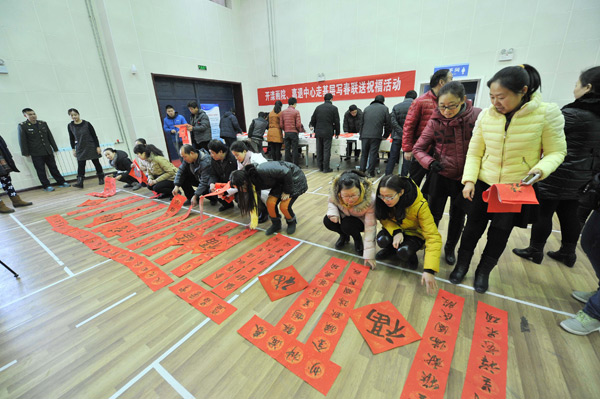 写春联送祝福活动在职工活动中心举行,开滦画院院长张霖生,副院长兼秘书长薄惠明,书法家郑连生、赵俊杰、杨玉建五位老师挥毫泼墨,撰写了二百余幅春联,为职工朋友们送上关心、送上问候,满溢的浓情和深深的祝福使得职工朋友们的脸上洋溢着幸福喜悦的笑容。