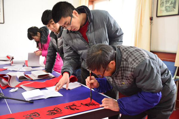 华亭煤业集团东峡煤矿开展了为职工义务写春联送祝福活动 来源:华亭煤业集团东峡煤矿 作者:白银宝 时间:2016-02-06 【字体:小 大】 2月3日,甘肃华亭煤业集团公司东峡煤矿组织书法爱好者在职工活动室开展了“写春联、送春联”活动,为职工家属书写春联200多幅,为新年增添了亮丽色彩。图为“写春联、送春联”活动现场。 智能标签: 华亭煤业集团 东峡煤矿 相关内容 分享到: 【打印正文】