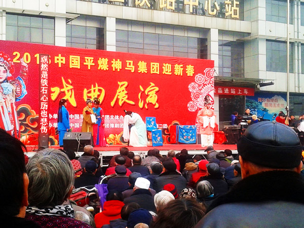 中国平煤神马集团举办春节戏曲广场活动 来源:中国平煤神马集团 作者:王斌 时间:2016-02-15 【字体:小 大】 2016年2月10日,农历大年初三,中国平煤神马集团铁路中心站广场上人山人海,该集团豫剧二团演出的大型传统豫剧《泪洒相思地》,拉开了为期三天的戏曲广场活动的序幕。 春节期间为职工群众和市民献上三天六台大戏,用广为大众喜爱的戏曲广场活动活跃人们的节日文化生活,是该集团坚持了二十多年并已成传统的活动。这一活动深受职工家属和市民的喜爱,每年会吸引市区和周边各县的人们前来观看,成为市区节日的一大文化盛景。图为演出现场。 智能标签: 中国平煤神马集团 春节 戏曲 相关内容 分享到: 【打印正文】