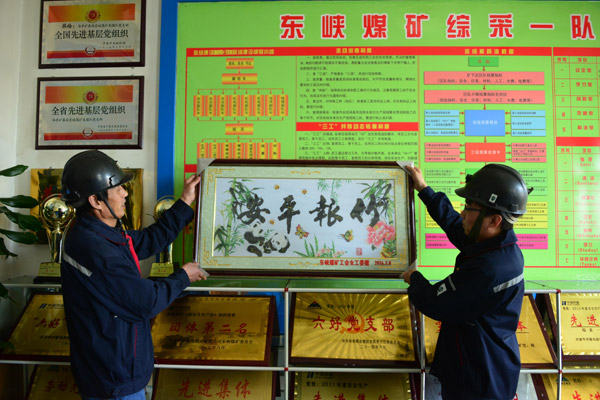 华亭煤业集团东峡煤矿女工委送平安辛福吉祥进区队 来源:华亭煤业集团东峡煤矿 作者:白银宝 时间:2016-03-04 【字体:小 大】 为筑牢安全生产第二道防线,发挥“半边天”作用。3月3日,甘肃华亭煤业集团公司东峡煤矿女工委把女职工亲手制作的,并且寓意平安辛福吉祥的16幅十字绣送到各区队,叮嘱矿工兄弟遵章作业,安全生产。 智能标签: 华亭煤业集团 东峡煤矿 女工 相关内容 分享到: 【打印正文】