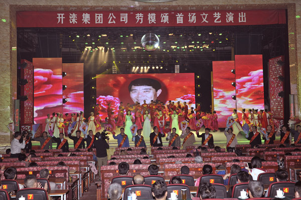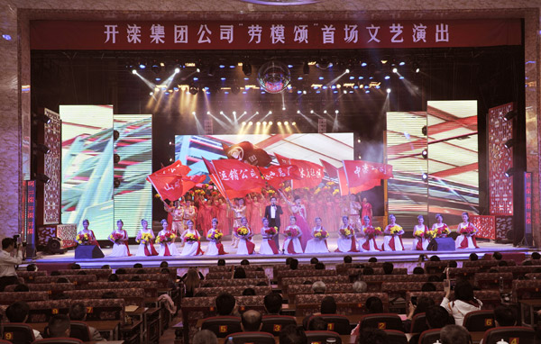 4月28日下午,开滦集团在西山口俱乐部举办“劳模颂”首场文艺演出,以文艺演出的方式,隆重纪念“五一”国际劳动节。开滦集团党委副书记、总经理张建公、唐山市总工会党组书记、副主席张喜怀、开滦集团公司党委副书记庞学东、张雨良等领导和劳动模范、员工代表一同观看了演出。