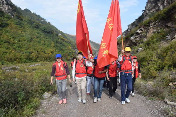 团旗飘,团徽闪。这支年轻的出征队伍接过旗帜,“全副武装”,乘车一路谈笑风生,他们要赶赴轩岗云中山,开展登山活动。
