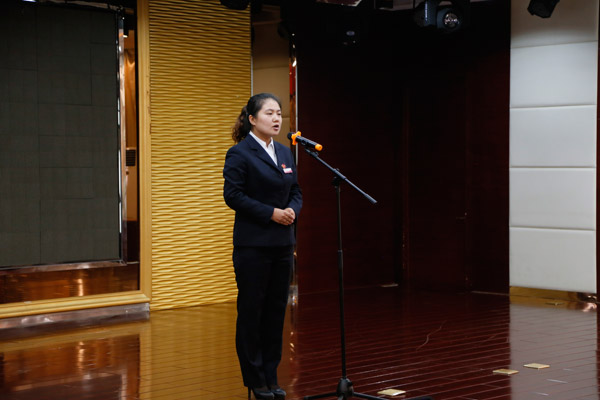 机电队党支部参赛选手郝玉梅正在声情并茂的演讲