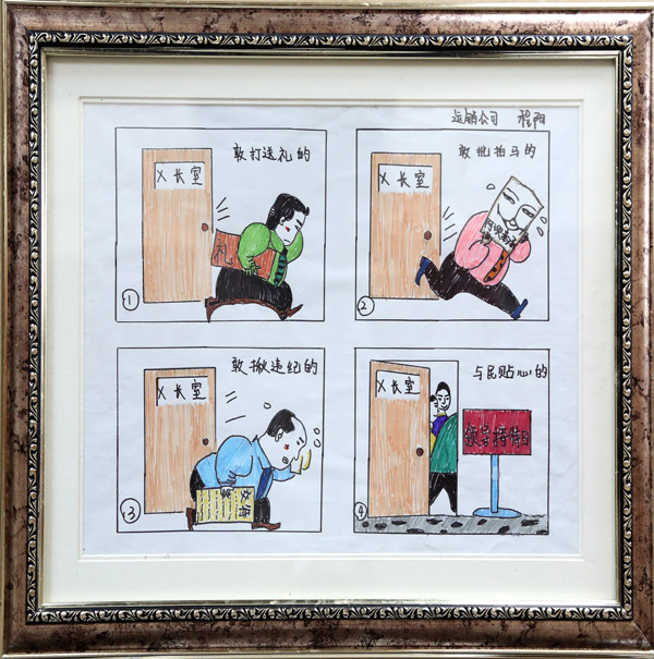 正在观展的党委副书记、纪委书记杨晓霞说,今年我们通过观看警示教育片、开展专题讲座、党员讲党课等一系列活动,就是为以学促知、以知促行,不断的提高员工守纪律、讲规矩、爱岗敬业、勤政廉政意识,人人力争做一名合格党员。举办本次“庆国庆”书法漫画展,既是对祖国第67个生日的祝福,也确保公司上下能度过一个风清气正节日。