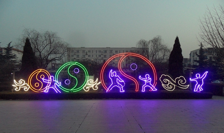 健康太极图。以职工动感活力运动为主题,展示企业职工热爱生命、凝聚快乐,幸福吉祥的生活场景,引领祝福小区居民崇尚健康运动,传承民族体育,共享幸福生活。