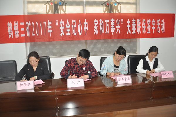 为充分发挥家属协管和亲情监督安全阵地作用,形成人人重视安全、关心安全的浓厚氛围,层层落实安全责任,进一步提高全员安全责任意识,加快形成安全生产齐抓共管,安全责任同承共担的良好氛围,4月21日,河南能源集团鹤煤公司三矿工会组织6对夫妇代表在工会二楼会议室分别于协管会、协管分会共同签订了“夫妻联保安全承诺书”。