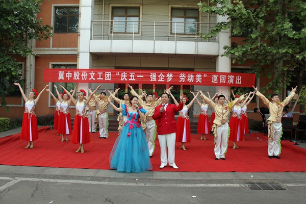 5月10日,冀中股份文工团“迎五一强企梦 劳动美”巡回演出走进葛泉矿。