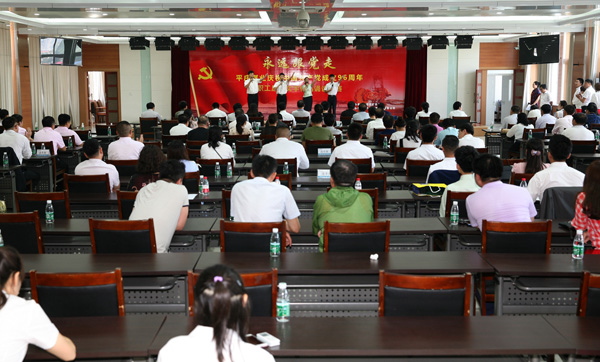 为庆祝中国共产党成立96周年,6月27日, 由平庄矿区工会主办、煤炭销售公司承办的“永远跟党走”平庄煤业职工原创文学作品诵读比赛在平庄煤业技工学校培训中心隆重举行。
