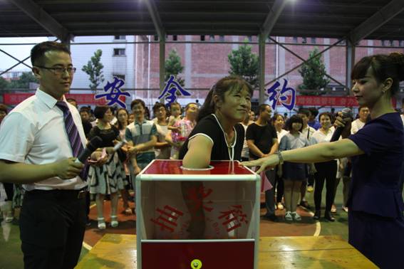 6月27日晚,冀中能源股份公司葛泉矿工会举办了“安全有约”丈夫无三违妻子来抽奖暨安全月文艺晚会。该矿党委书记王学贞等矿领导以及广大职工家属现场观看晚会。