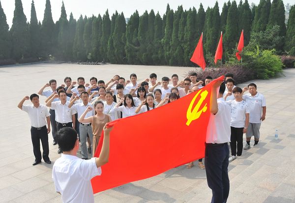 为了纪念中国共产党诞辰96周年,6月29日上午,安徽淮北煤电技师学院党委组织2017年新入党党员、预备党员和党员代表40人赴淮海战役双堆集烈士陵园进行入党宣誓,或重温入党誓词,瞻仰烈士陵园,缅怀革命先烈,传承红色基因,强化党员意识,进行爱党爱国教育。