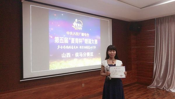 近日,中央人民广播电台第五届“夏青杯”朗诵大赛侯马分赛区专场比赛在侯马隆重举行。经过海选、初赛、复赛,侯马热电分公司员工刘海霞从150余名参赛选手中脱颖而出,她朗诵的《祖国,你就是我最想唱的那首歌》时而激情澎湃,时而含情脉脉,真情流露,极富感染力,因此荣获侯马分赛区一等奖,充分展现了侯电职工积极向上的精神风貌和良好的文化素养。