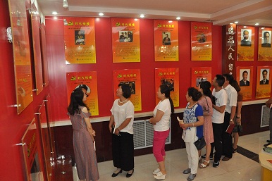 图为该矿党员参观廉政教育基地——劳模图片展现场。