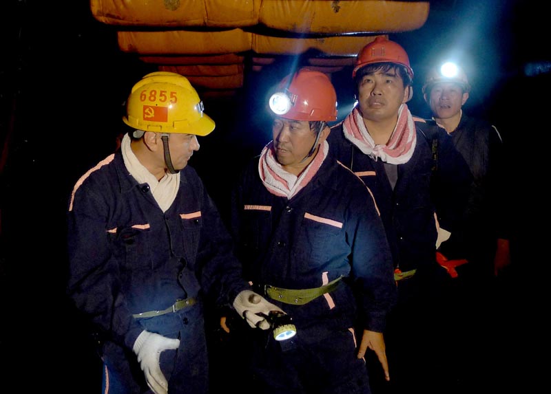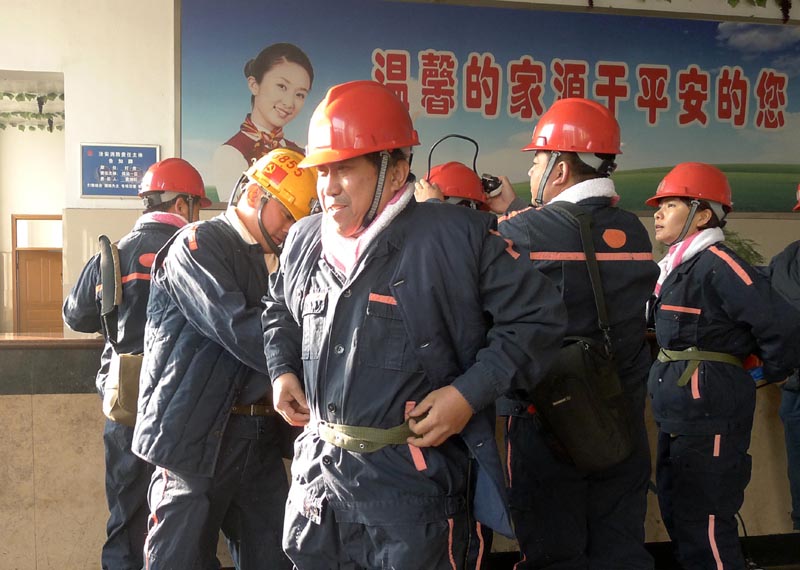 11月16日举行摄影讲座后,解海龙先后深入井口、车间、灯房、煤场及职工浴池等现场进行摄影创作,每拍几幅审视之后他都连连叫好,对拍摄效果表示满意!17日上午解海龙在杨庄矿领导陪同下深入到井下巷道和掘进头采访创作,拍摄了大量反映矿工劳作的照片。升井后他激动地说:我笫一次下井,感触颇多,所到之处都是现代化、人性化管理。煤矿是一个火热的战场,矿工作为劳动者是伟大的,可歌可泣的,作为摄影人,我要多多接触矿山,表现矿工,更多更好地塑造伟大的中国矿工的形象!