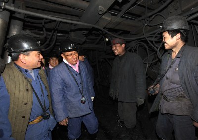 河南煤化焦煤集团总经理张延明(左二)深入井下进行调研
