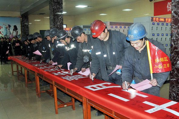 亲情感染法。发挥亲情的感染力量,编制了一张保障安全的亲情网。职工活动室、员工宿舍床头都有一幅全家福图片,意向是亲人时刻都在身边嘱托安全。矿区亲情宣讲队进区队班组进行亲情演讲。组织了亲情联谊会,儿女给父亲写安全信、井口送汤送水等活动。深入社区家庭走访,倡导家属吹好安全生产“枕边风”,多诵“安全经”。针对违章职工,与家人签订了“亲情安全约定”。开展了“和谐家庭”、“好矿工、好矿嫂”等选树评比活动。